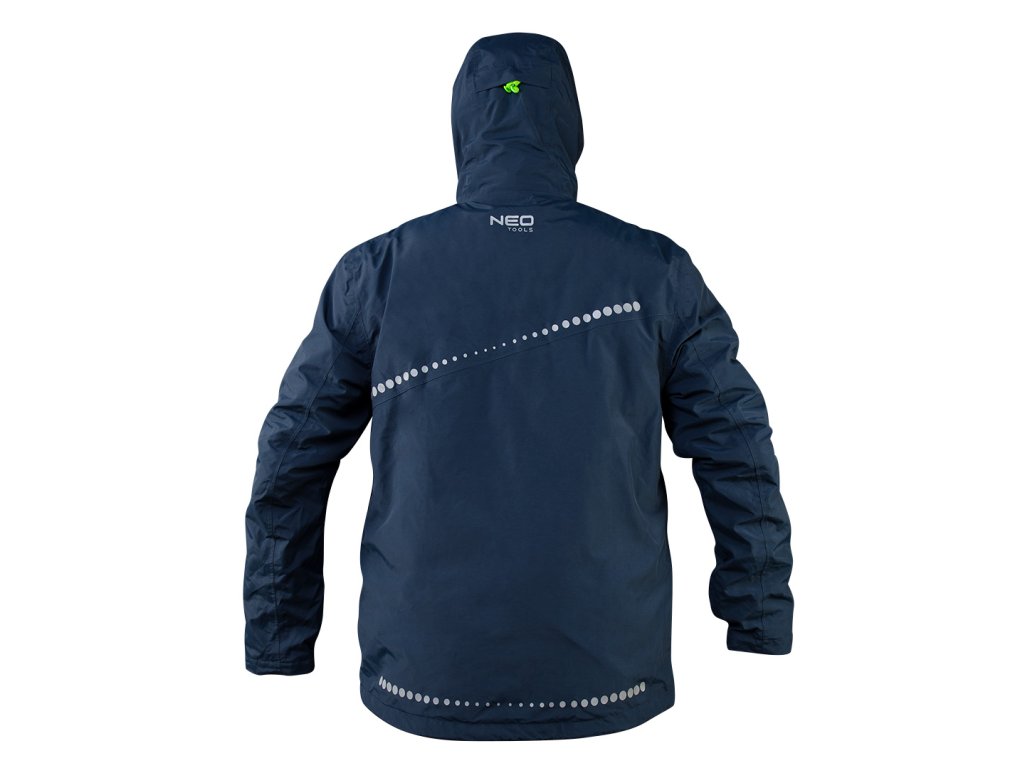 Bunda 3v1, membrána 10000 PREMIUM,NEO, větruodolná a vodoodpudivá, určená pro práci v přírodě. Je praktická do všech podmínek díky tomu, že se skládá ze dvou částí, které lze nosit samostatně nebo je vzájemně kombinovat: fleece a větrovka. Fleece lze v chladnějších dnech použít jako mikinu. Větrovka s kapucí je ideální bundou do deštivého a větrného počasí. Po připojení péřové bundy vytvoří větrovka teplou ochrannou bundu, která se hodí při práci, ale i při koníčcích, například na výlety. Bunda je také vybavena pohodlnou kapucí s regulací a silikonovou légou na rukávu, která umožňuje nastavit šířku manžety. Reflexní prvky bundy zajišťují dobrou viditelnost a bezpečnost v kteroukoli denní dobu a za různých povětrnostních podmínek. Bunda je originální zakázkový projekt vytvořený v Polsku. Bunda NEO Tools Premium je dobrou volbou.