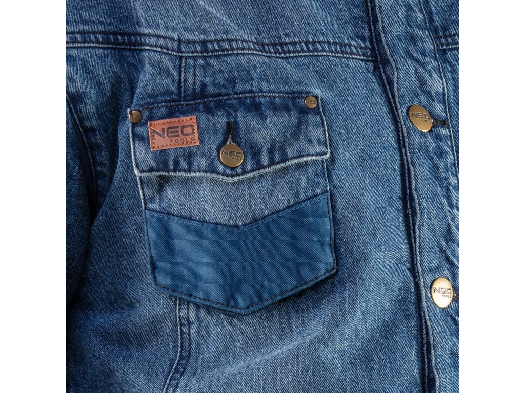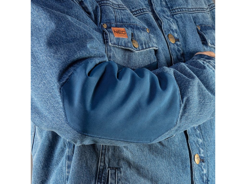 Zateplená džínová bunda DENIM NEO, klasická džínová bunda s "ovčím" límcem, barva indigo. Klasická džínová bunda se zateplením pro tepelný komfort v chladnějších dnech. Hodí se pro práci v dílně, na stavbě i na zahradě, ale i pro každodenní použití. Lokty a kapsy jsou vyztuženy bavlněným materiálem Oxford. Ve spodní části bundy jsou klopy, díky nimž můžete upravit šířku bundy. Výrobek je certifikován CE pro shodu s normou EN ISO 13688:2013. K dispozici ve velikostech S-XXXL.