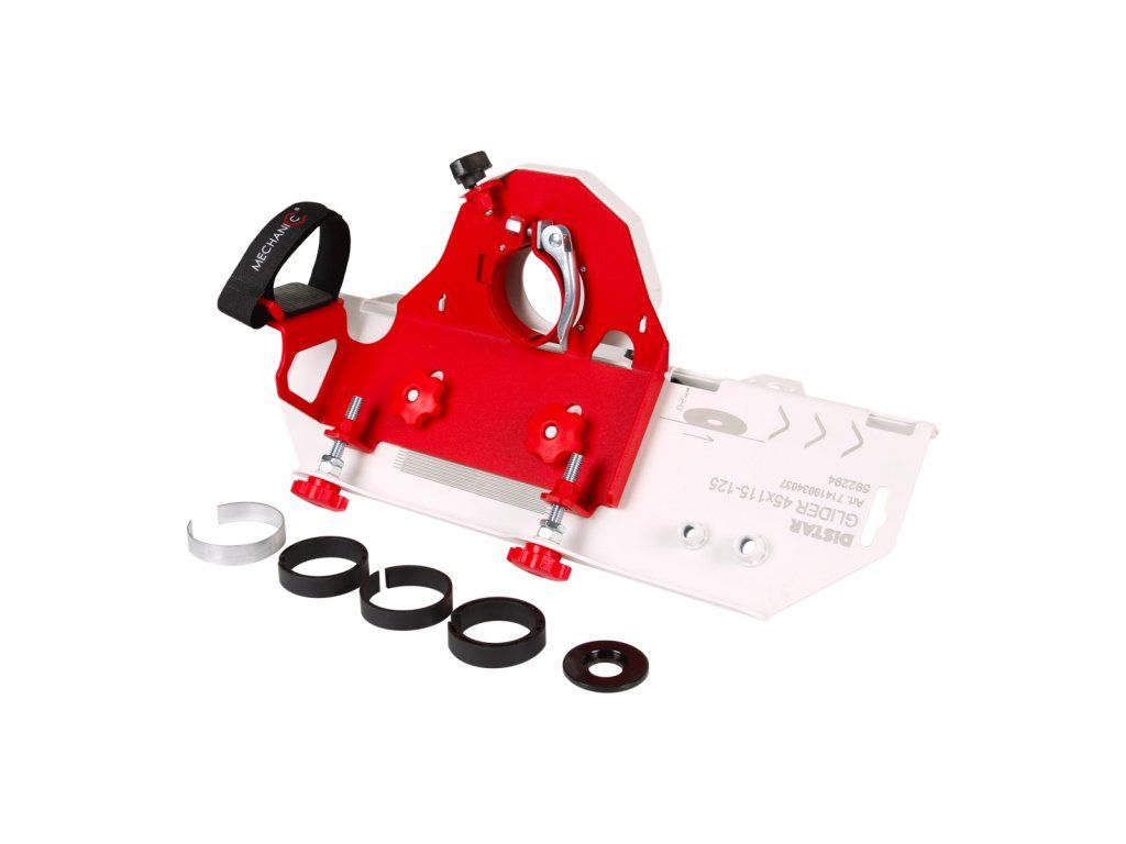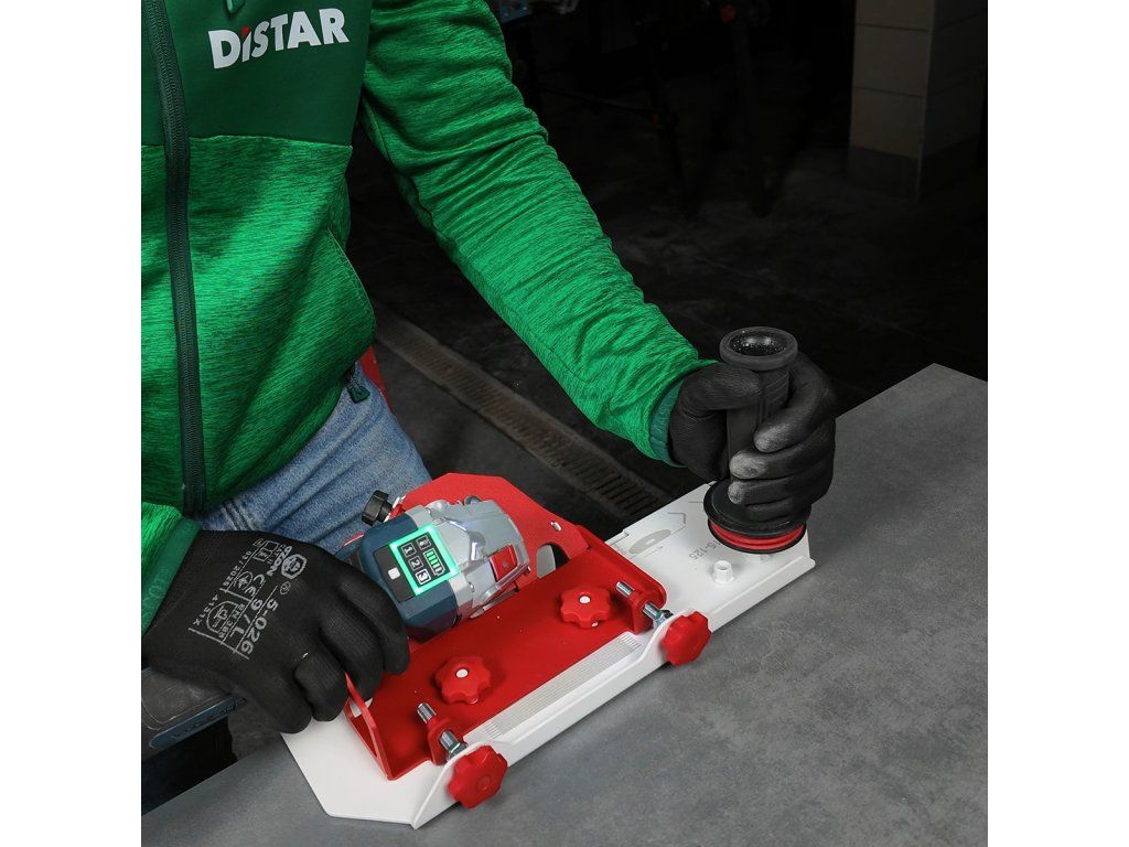 Univerzální uzamykací systém umožňuje instalaci úhlových brusek o průměru 115 – 125 mm od jakéhokoli výrobce. Přímé upevnění na převodovku brusky eliminuje vibrace během provozu. Nastavení odsávání prachu pro porcelánové dlaždice o tloušťce do 14 mm zajišťuje maximální účinnost odsávání prachu. Jednotka se nastavuje rychle a jednoduše bez použití nářadí.