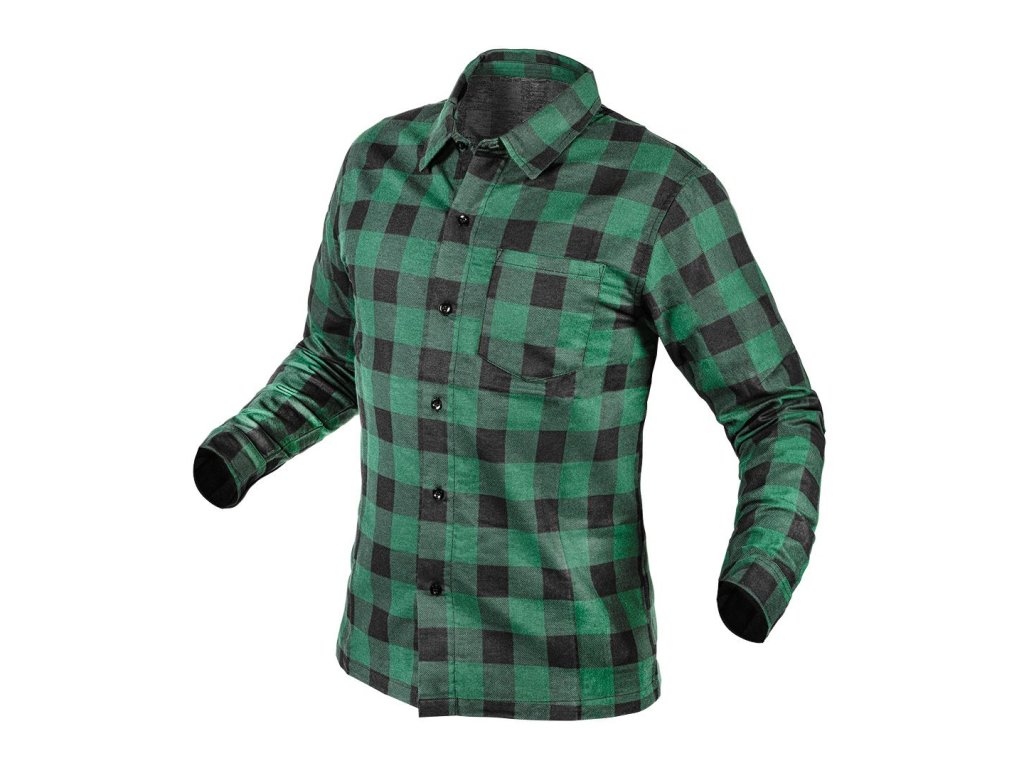 Flanelová košile, zelená,NEO tools je měkká a pohodlná univerzální košile s tištěným zeleno-černým kostkovaným vzorem. Jedná se o mimořádně odolnou metodu nanášení barev na 100% bavlnu. Hmotnost tkaniny je 170 g/m2. Košile se zapíná na knoflíky a má mírně vyztužený límec. Na přední straně je náprsní kapsa, která dodává styl a poskytuje praktické místo pro uložení drobných předmětů. Manžety na knoflíky umožňují pohodlné vyhrnutí rukávů.Košile má certifikát CE. Doporučuje se pro práci i každodenní nošení bez omezení.