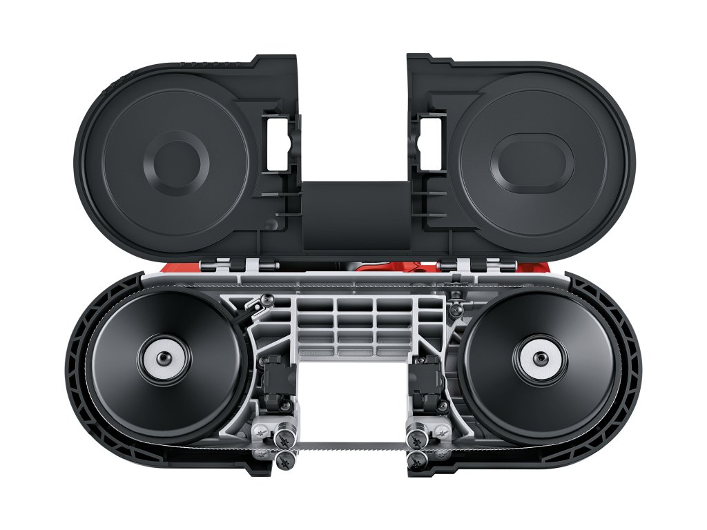 Pásová pila je díky své konstrukci dokonale vyvážená a podporuje ji optimální rozložení hmotnosti akumulátoru a motoru. Lehký stroj třídy 18 V