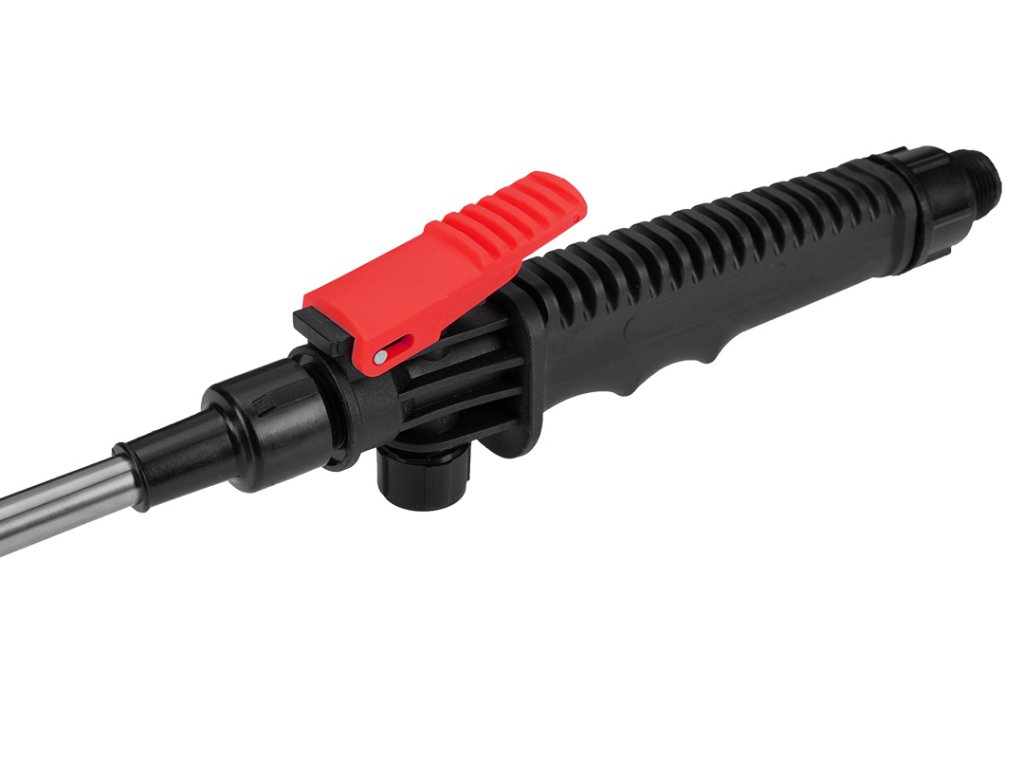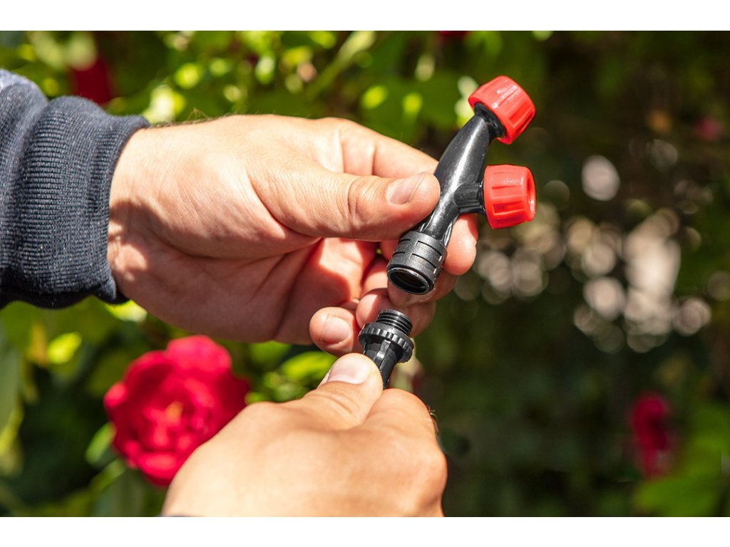 Ergonomická, masivní pogumovaná rukojeť zajišťuje pevný úchop a protiskluzové vlastnosti. Jedná se o univerzální postřikovač, který se doporučuje pro mnoho zahradnických sezón.