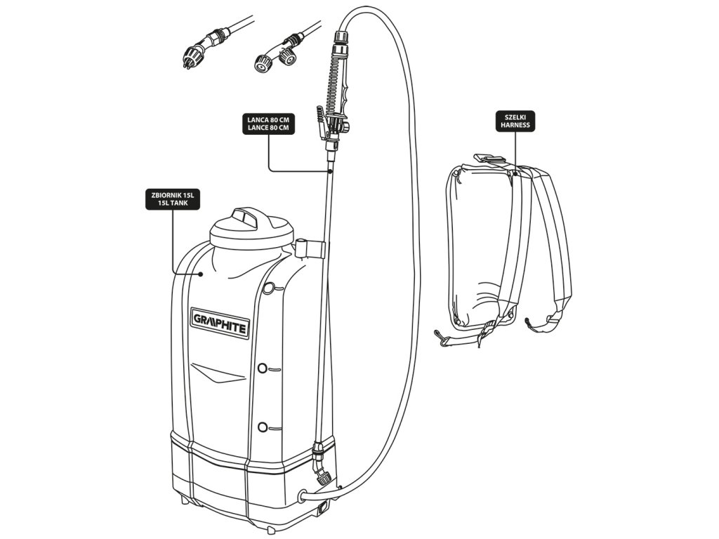 GRAPHITE Energy + 18V akumulátorový postřikovač, Li-lon, 15L nádrž, bez akumulátoru