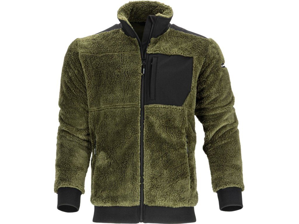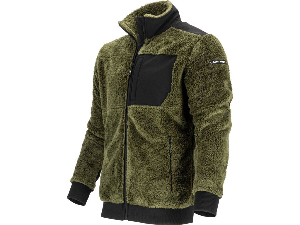 Pánská zelená mikina na zip ze sherpa flísu s kapsami Lahti Pro