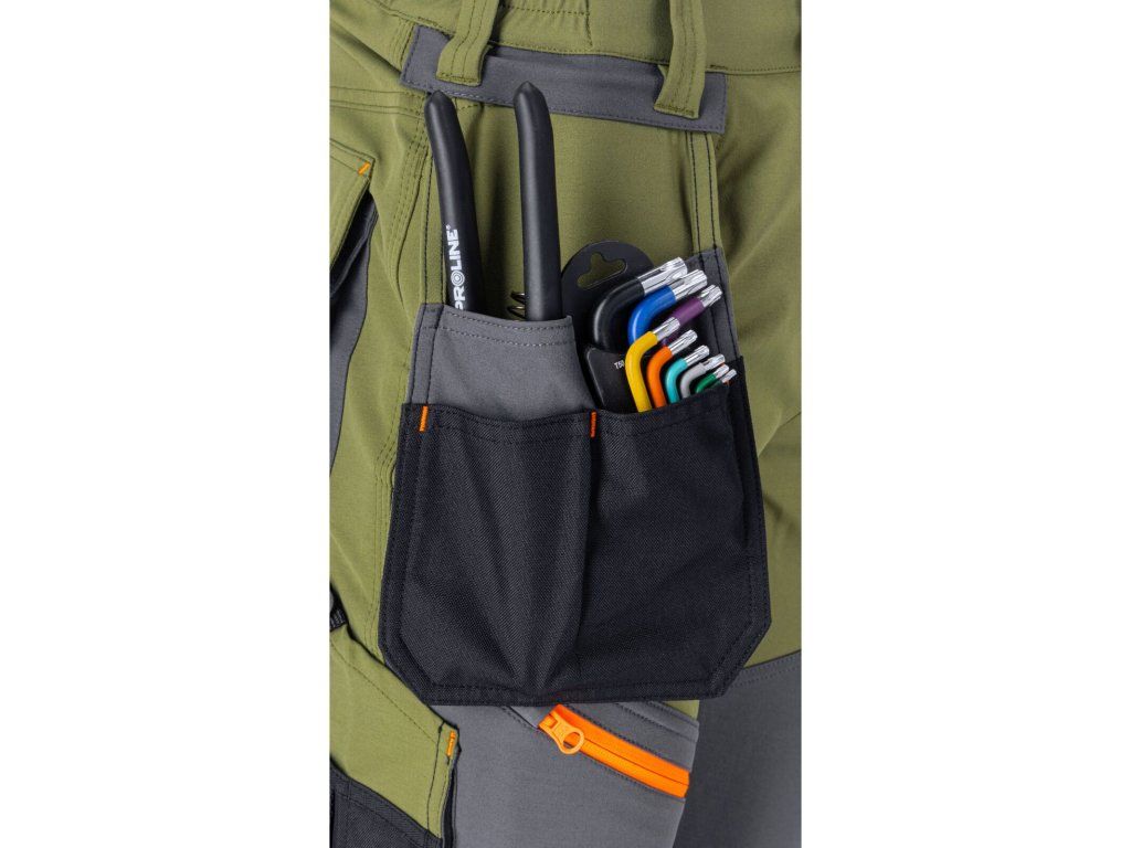 Kalhoty Lahti Pro mají 14 praktických kapes, které umožňují dokonalou organizaci nářadí a příslušenství. Patří mezi ně jedna kapsa na zip a dvě zajištěné suchým zipem. Myslelo se i na ty, kteří pracují s telefonem – součástí balení je i samostatná kapsa na mobilní telefon. Další výhodou jsou praktické, odnímatelné kapsy na nářadí, které zvyšují flexibilitu.