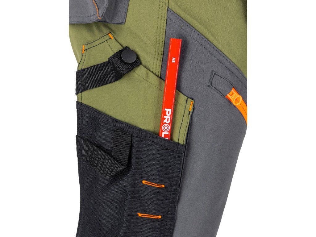 14 praktických kapes: Včetně kapsy na telefon a kapsy se zapínáním. />Odnímatelné kapsy na nářadí: Maximální funkčnost a flexibilita.