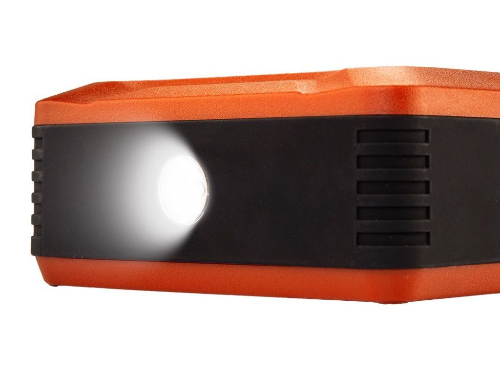 Startovací adaptér je také vybaven kompresorem pro huštění pneumatik. Obsahuje také baterku, která se jistě hodí v různých situacích.