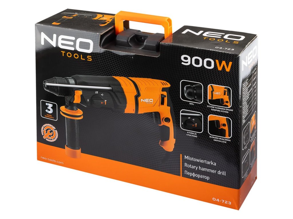 NEO TOOLS Vrtací kladivo SDS+ 900 W, 3,5 J, kufřík