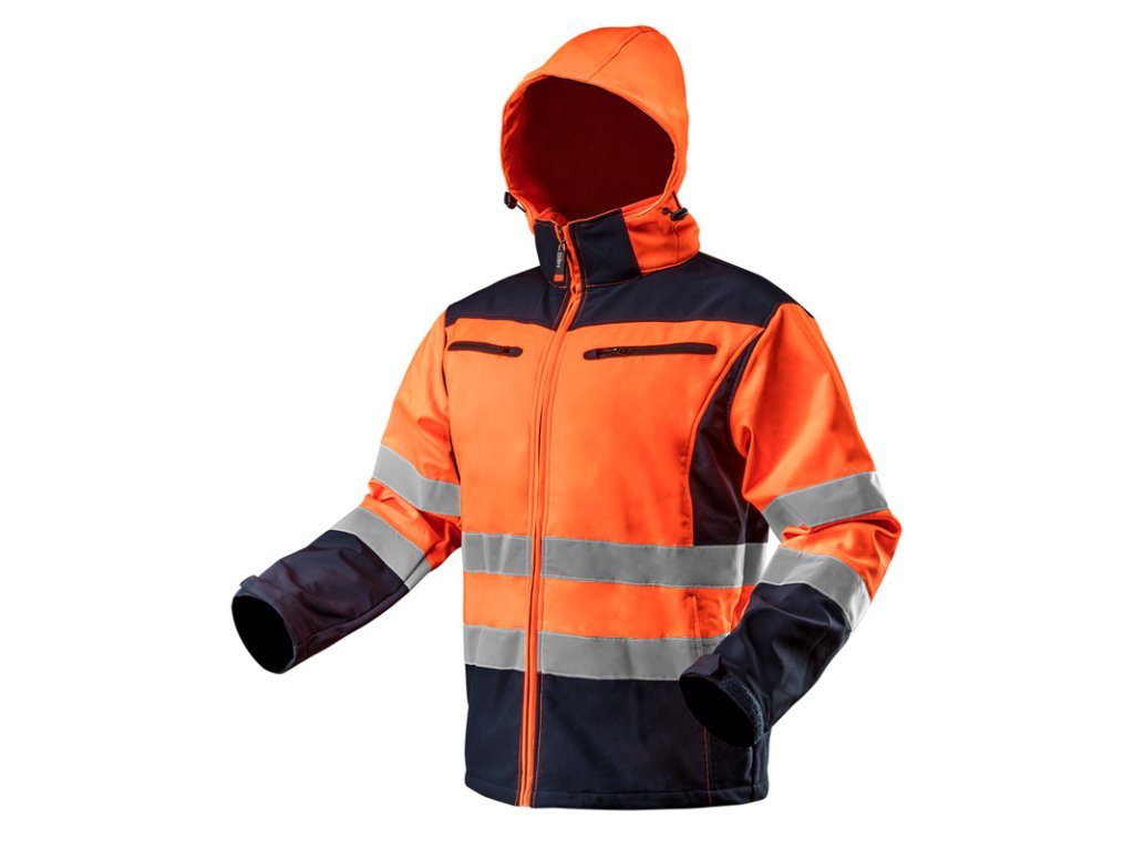 Pracovní výstražná softshellová bunda s kapucí, oranžová, velikost XXXL