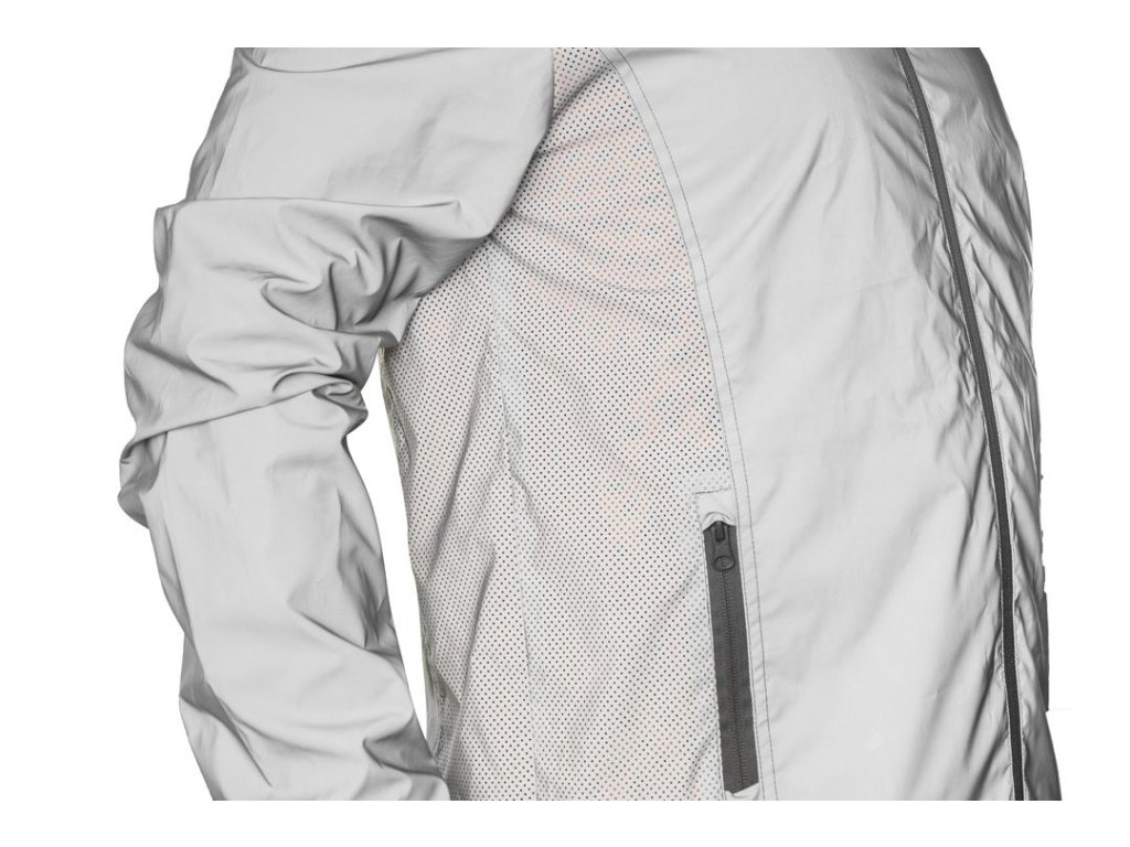 Větrovka REFLEXIVE, reflexní materiál, NEO vyrobená výhradně z reflexního materiálu. Praktická bunda, která chrání před větrem a mírným deštěm. Ideální na cesty s batohem, pěší turistiku nebo cyklistiku. Větrovka má kapuci s vysokým límcem. Vnitřní strana bundy zabraňuje zamlžování díky laserovým výřezům na bocích. Reflexní tkanina, ze které je bunda vyrobena, zajišťuje dobrou viditelnost a bezpečnost v kteroukoli denní dobu a za různých povětrnostních podmínek. Vyplatí se mít ho s sebou, zejména mimo zastavěné oblasti, kde je důležitá dobrá viditelnost.