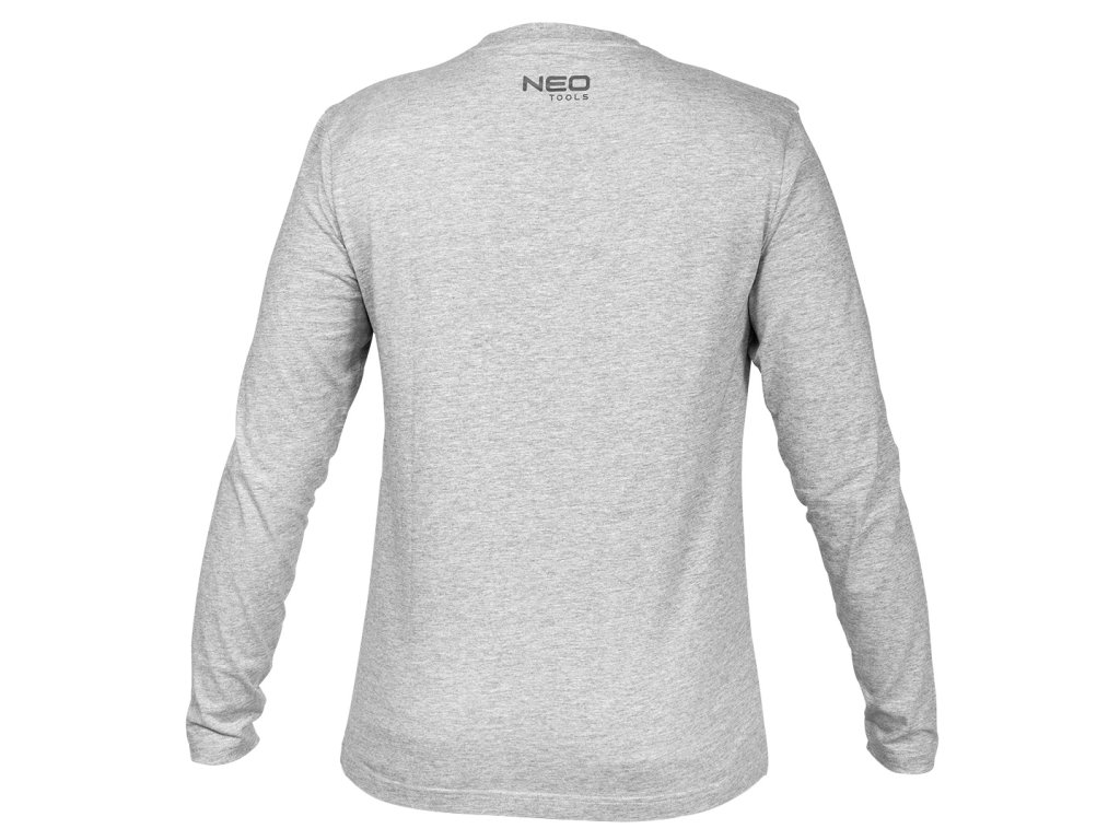 je tričko s dlouhým rukávem v módní šedé melanžové barvě. Je vyrobena z měkké pleteniny o gramáži 180 g/m2. Tričko s dlouhým rukávem je vyrobeno z kombinace 90 % bavlny a 10 % viskózy. Má kulatý výstřih zakončený elastickým lemem, jmenovku a vytištěné logo na zadní straně krku. Má certifikát CE. Triko s dlouhým rukávem je pracovní oděv značky NEO TOOLS, který je vhodný pro mnohostranné použití.