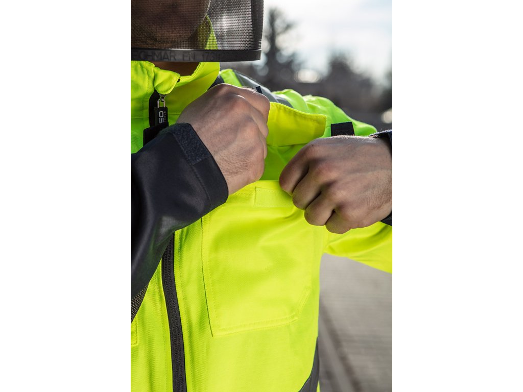 Pracovní blůza VISIBILITY NEO TOOLS, je pohodlný outfit určený pro všechny druhy práce, určený pro profesionální i domácí použití. Je to nejen pohodlné, ale také bezpečné oblečení pro jakoukoli práci v přírodě. Protože je vyroben z materiálu v intenzivní limetkové barvě, poskytuje viditelnost odpovídající třídě 2. Tmavé prvky byly zase umístěny na místech, která byla obzvláště vystavena znečištění. Pro pohodlné umístění různých nástrojů je blůza vybavena prostornými kapsami na suchý zip, které jsou umístěny na hrudi. Vysoký límec dobře chrání krk. Rukávy mají nastavitelná poutka pro pohodlné obepnutí zápěstí.